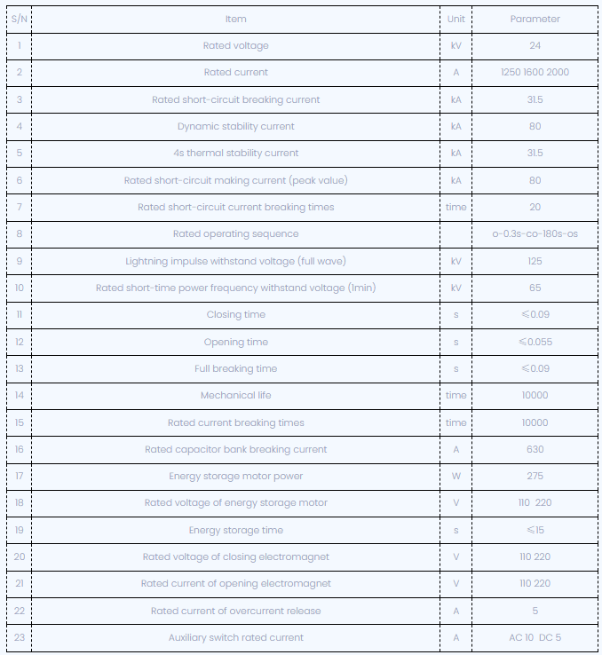 4. 실내 진공 회로 차단기는 GB1984 AC 고전압 회로 차단기 표준을 준수합니다.
