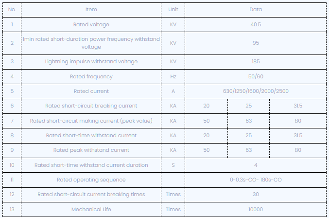 전압 등급 :40.5kV (95kV 번개 임펄스를 견딜 수 있습니다).