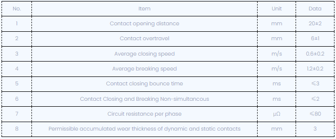 회로 차단기를 조정 한 후, 기계적 특성 매개 변수는 다음과 같습니다.