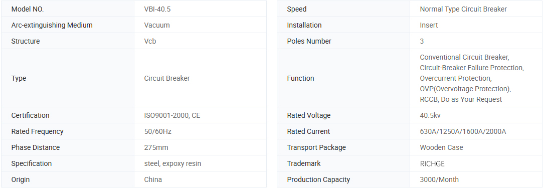 VBI 실내 고전압 진공 회로 차단기는 3 상 AC 50Hz 및 정격 전압이 40.5kV 인 실내 장치입니다. 산업 및 광업 기업, 발전소 및 변전소, 특히 빈번한 운영이있는 장소에서 전기 장비의 제어 및 보호에 사용할 수 있습니다. 스위치 캐비닛의 회로 차단기의 설치 형태는 트롤리에 설치된 고정 유형이거나 철수 가능한 유형 일 수 있습니다 .VBI 실내 고전압 진공 회로 차단기는 신뢰할 수있는 성능이 있으며 설치가 쉽습니다. 고전압 전송 및 분배 시스템의 제어 및 보호를위한 최상의 선택입니다.