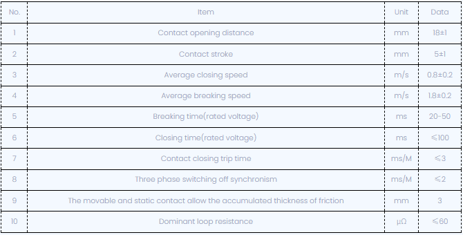 회로 차단기를 조정 한 후 기계적 특성 매개 변수가 아래에 나와 있습니다.