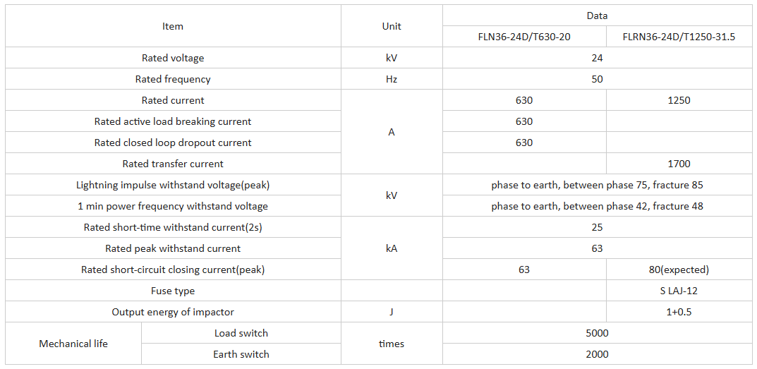 FLN36-12 (24) D/630-20 실내 AC 고전압 SF6 하중 브레이크 스위치 및 FLRN36-12 (24) D/100-31.5 실내 AC 고전압 SF6 하중 스위치 퓨즈 조합은 3 상 AC 50/60Hz RMU 및 터미널 발전소에 사용됩니다. 스위치는 하중 상황에서 10kV, 24kV 및 35kV 전원 시스템을 보호하는 데 적합합니다. 스위치는 온로드 전류, 폐쇄 루프 전류, 무부하 변압기 용량 및 케이블 충전 전류를 끕니다. 퓨즈 조합을 갖는 스위치는 전류가 정격 단락 차단 전류의 범위에있을 때 모든 전류를 차단할 수 있습니다. RMU, 결합 변압기 등에 적합합니다.