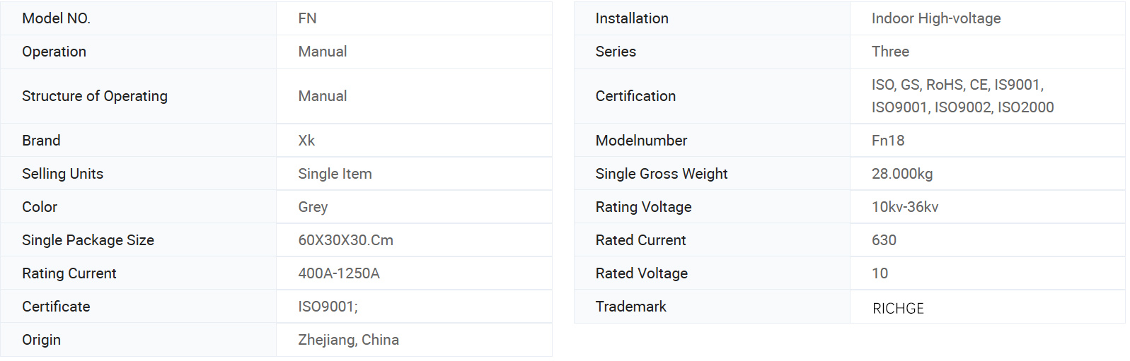 AC 50Hz 정격전압 12kv, 정격전류 630A Esp의 3상 배전에 사용됩니다. 도시망 건설 개선 고층빌딩 및 공공시설의 전력링망용으로 패키지 변전소 및 변압기 보호에 이상적인 제품입니다. 첨단설계 단순조작 충격구조 스마트한 외관 경량완벽한 기능 빠른 ON/OFF 속도와 높은 신뢰성이 특징입니다.