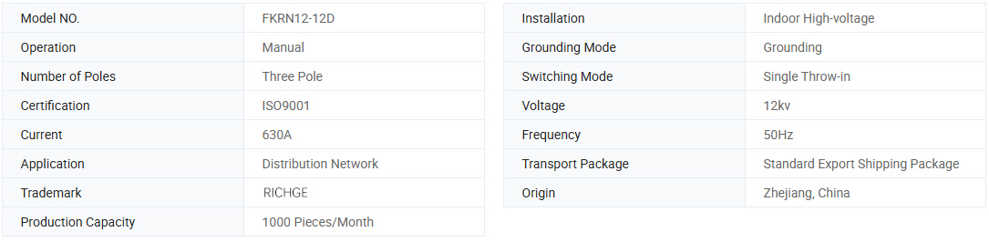 FKN12-12D/630-20 시리즈 에어 블래스트 하중 브레이크 스위치 (이하 FKRN12-12D라고 함) 및 FKRN12-12D 시리즈 에어 블라스트 하중 스위치 및 퓨즈 조합 장치는 새로운 시리즈 스위치 기어 (Swestergear)는 정격 12KV의 3 단계 전기 분포 시스템에 적용되는 새로운 시리즈 스위치 기어이며, 케이블 및 헤드 전선을위한 보호 및 제어 장치로 작용합니다.