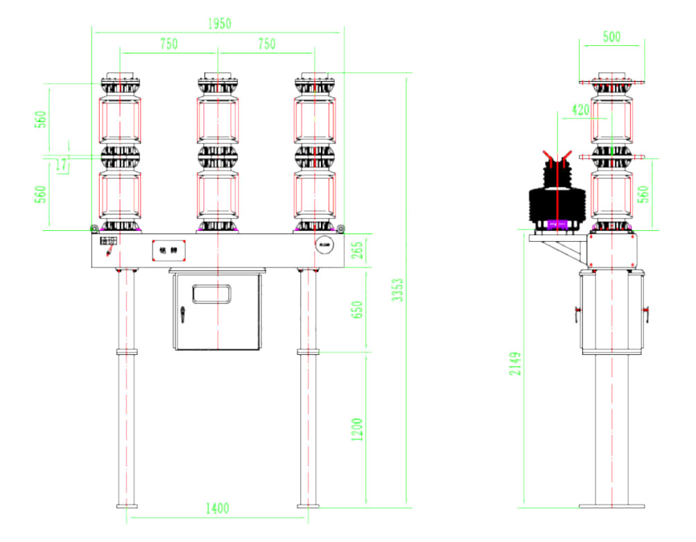 이 제품은 우수한 파괴 성능을 가지고 있으며, 압력 공기 유형 아크 소화 챔버를 사용하며, 전기 수명이 길고, 황 6 헥사 플루오 라이드 가스를 대체하지 않으며, 기계적 신뢰성이 높고 기계적 수명이 길고 자주 작동 할 수 있습니다. 각 세트에는 사용자가 선택한 6-12 전류 변압기가 장착 될 수 있습니다. 이 제품은 새로운 MKZ 모델 SF6 포인터 밀도 측정기를 채택합니다. 압력 게이지 판독 값은 온도 변화의 영향을받지 않으며 사용하기 쉽습니다.