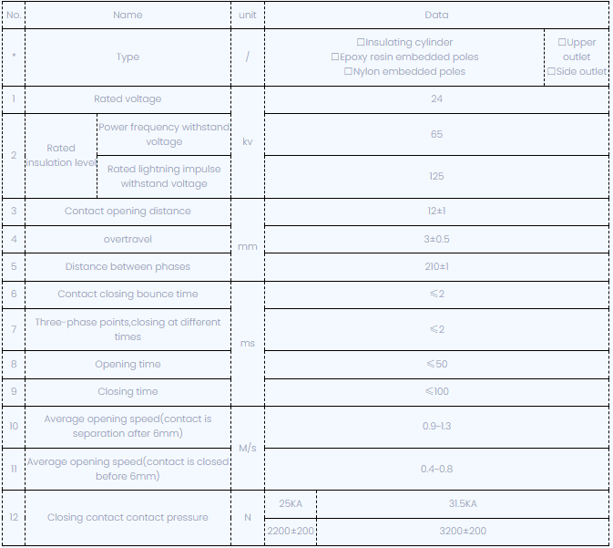 VBI-24 측면 장착 유형 진공 회로 비커의 작동 메커니즘은 스프링에서 스토리지 에너지로 사용되며, 수동 또는 전기의 두 가지 방법으로 작동 할 수 있습니다. 특성은 GB1984-89, JB3855-96에 따라<10kv Indoor High Voltage Vacuum Circuit Breaker General Technical Specifications>, IEC56 표준의 관련 조항.