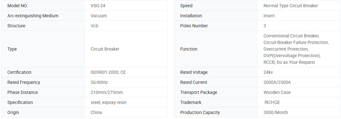 VSG-24 폴란드 폴이있는 실내 고전압 진공 회로 차단기의 일련는 3 상 A.C 50Hz 실내 전력 분배 장비입니다. 산업 및 명제 기업, 발전소 및 변전소의 분야에서 전기 장비를 보호하고 제어하는 데 사용됩니다.