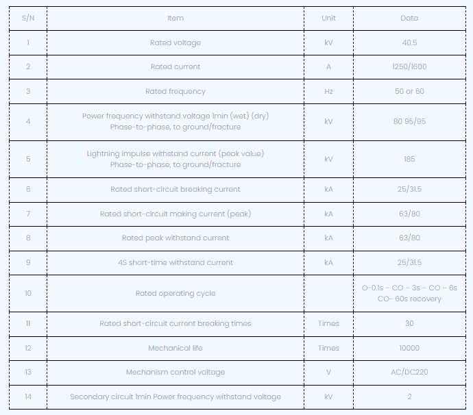 회로 차단기의 주요 특성은 탁월한 파괴 성능, 진공 아크, 높은 파손 용량, 최대 10000 회 기계적 수명, 간단한 구조, 유지 보수가없고 유지 보수주기가 길다. 좋은 절연 성능과 강력한 반 오염 능력; 현재 변압기는 최대 0.2 레벨의 측정 정확도로 고객 요구 사항에 따라 설치할 수있어 3 단계 상호 작용을 가능하게합니다. 표준 : IEC 62271-100