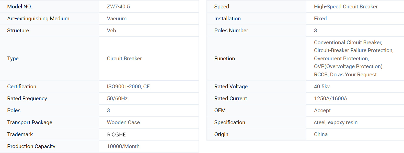 ZW7-40.5 실외 중간 전압 진공 회로 차단기는 Athree-CHASE AC 50HZOUTDOR 고전압 전기 장비가 20-40.5KV 전력 전송 시스템의 제어 및 보호에 적합한 ATHREE-CHASE AC 50HZOUTDORE 전기 장비입니다. 구간 회로 차단 업체 뱅크에서 사용될 수 있습니다. 전력 시스템의 절단 및 레딩 제어. 측정 및 보호를 위해 전류 변압기를 추가 할 수 있습니다. 링 회로 차단기에는 신뢰할 수있는 기계적 성능과 빈번한 작동이있는 스프링 또는 전자기 액추에이터가 장착되어 있으며, 화재 및 폭발의 위험은 없습니다.